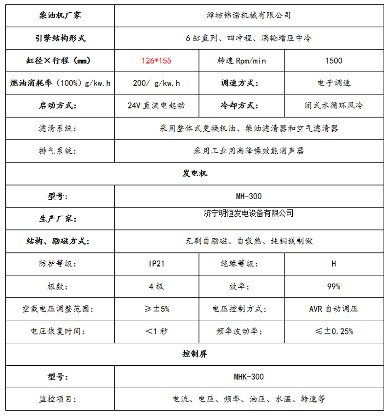 300KW濰柴斯太爾系列柴油發(fā)電機組技術(shù)參數(shù)